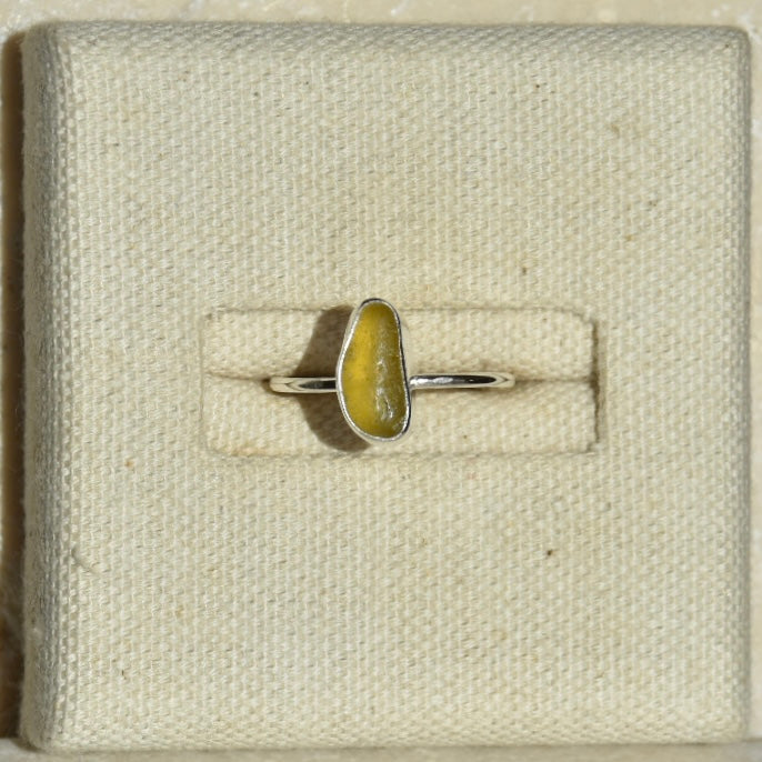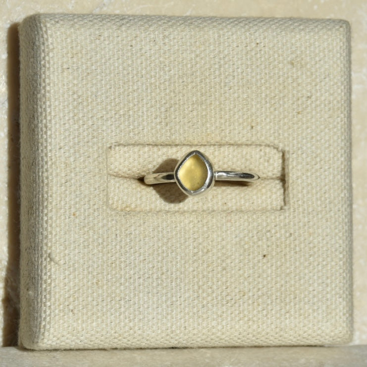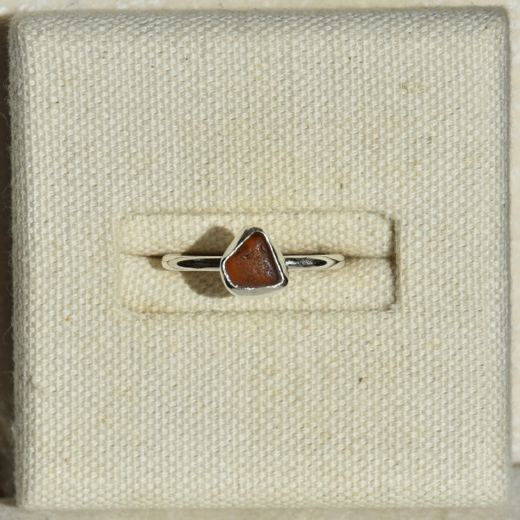 Amber Beaded Sea Glass Ring | Size M