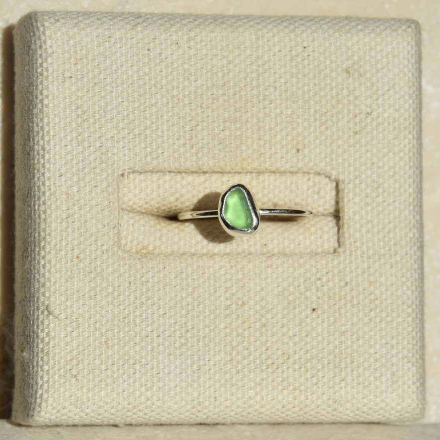 Bright Green Sea Glass Ring | Size Q